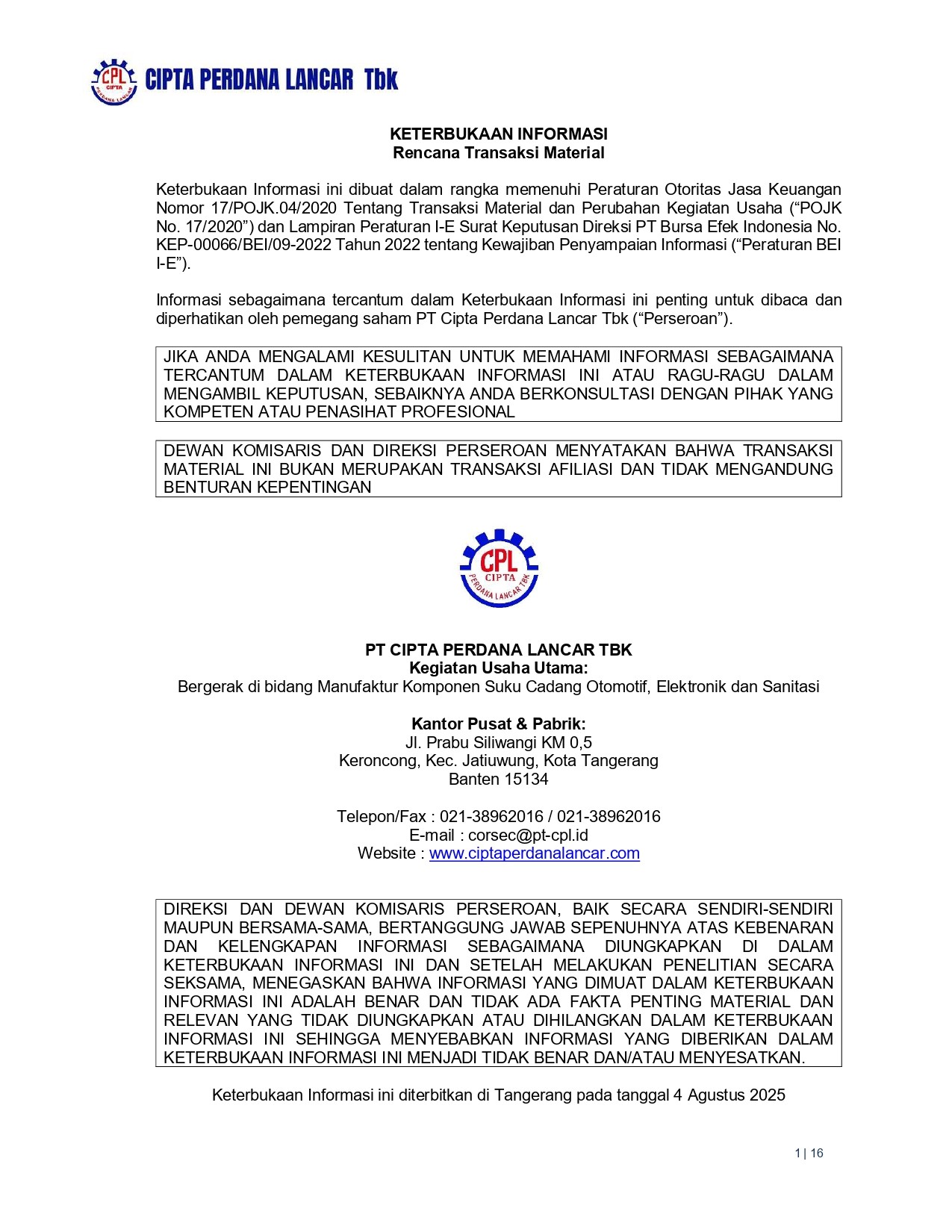 KETERBUKAAN INFORMASI